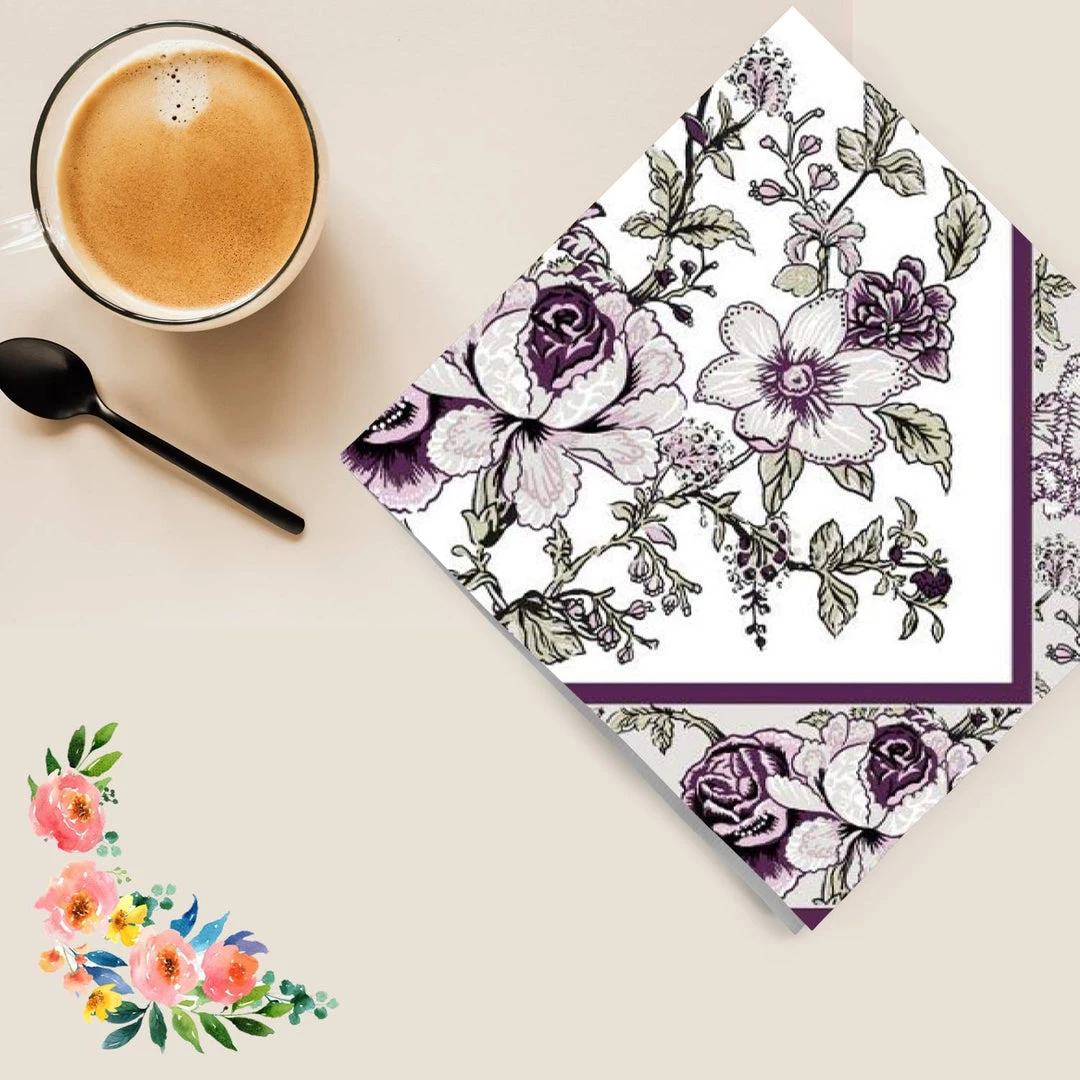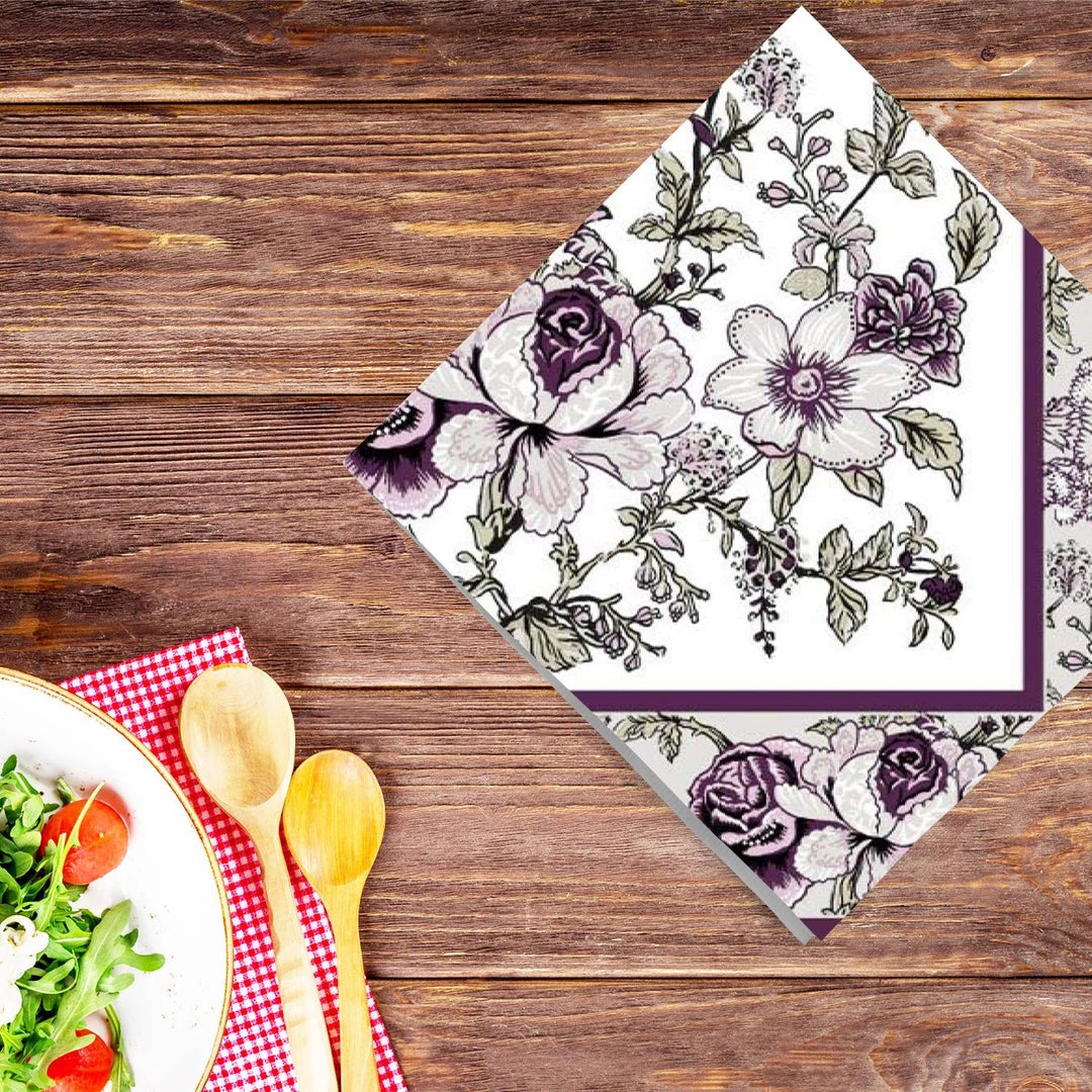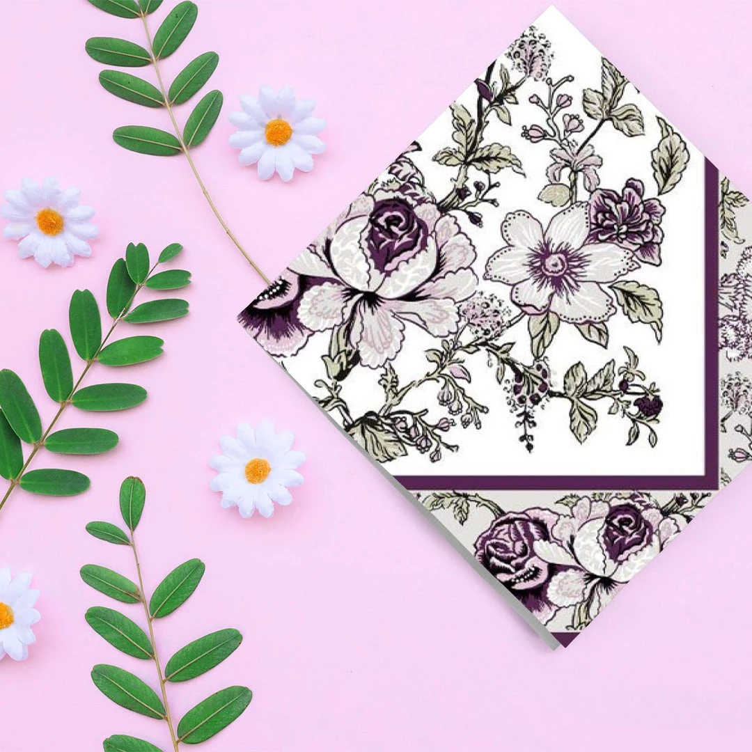 Nicole Fantini Collection Eggplant Bountiful Blossoms Disposable Lunch Paper 3-Ply Napkins 20 Ct