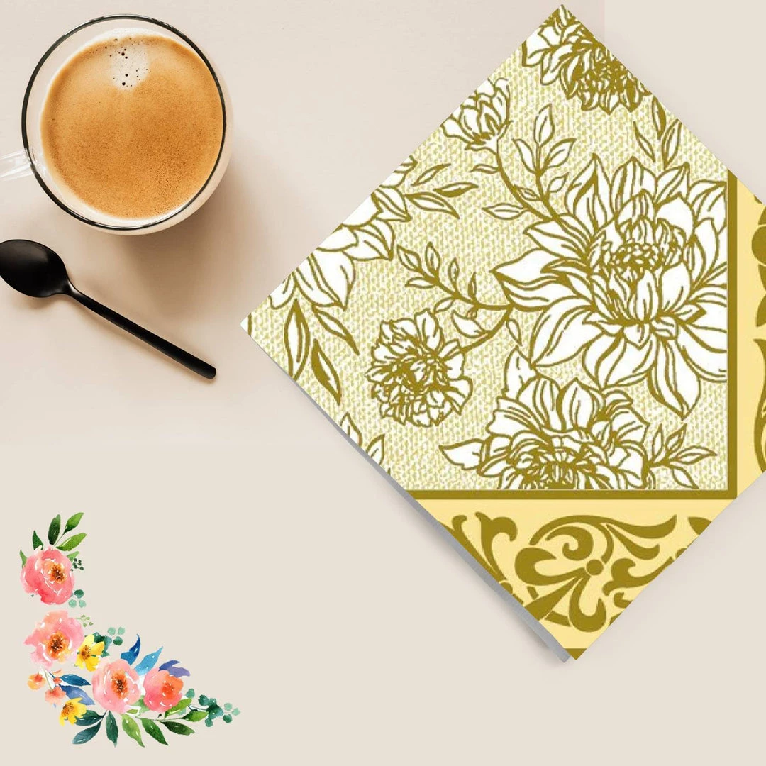 Add beautiful colors, intricate detail, exquisite design, and inspired moods to your kitchen and dinner table with these Lunch Napkins. The perfect napkins for your party, wedding, special event, holiday gathering, dinner parties, cocktail parties, luncheon, lunch, brunch, buffet event, or for your kitchen or dinner table. This beautiful napkin is a smooth and thick 3-ply paper texture that will not fall apart when drying wet hands.