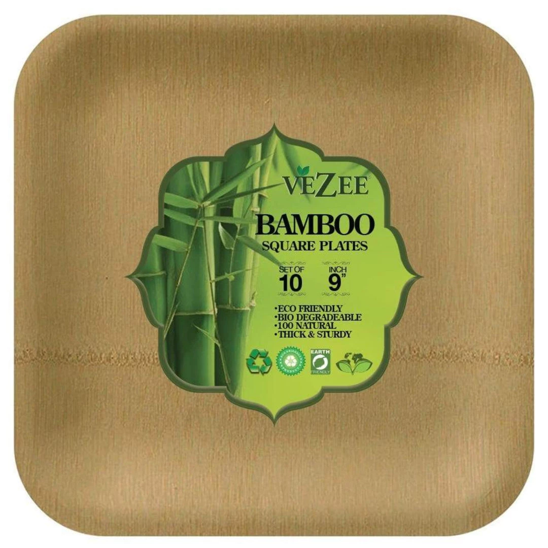 Nicole Fantini Collection SALE Vezee Bamboo Disposable Dinner Plates Square Size 9″ 10PC