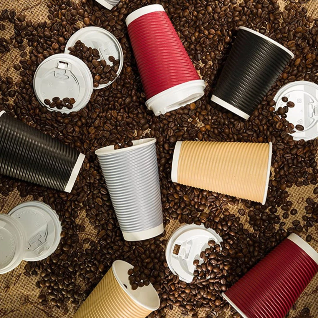 - DOUBLE WALL RIPPLE INSULATION: Our premium hot paper cups with lid, feature a special double wall and ripple insulation to let you hold your hot drinks without a problem! No heat sleeves needed!
