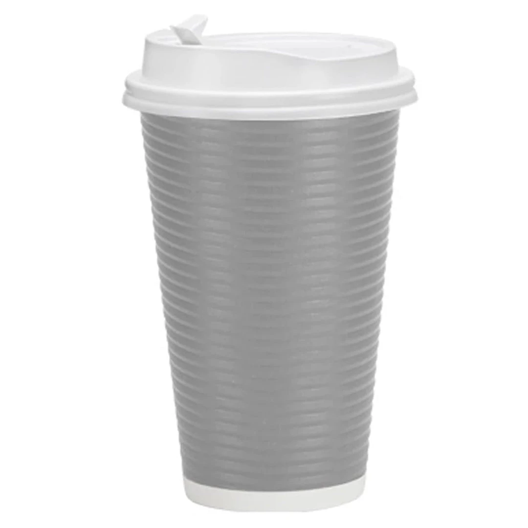 - PACKAGE INCLUDES: 30 Silver Disposable Double Wall Paper Cups with Lids – 16 oz
