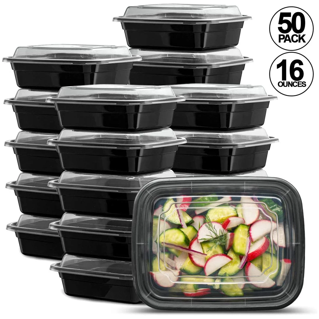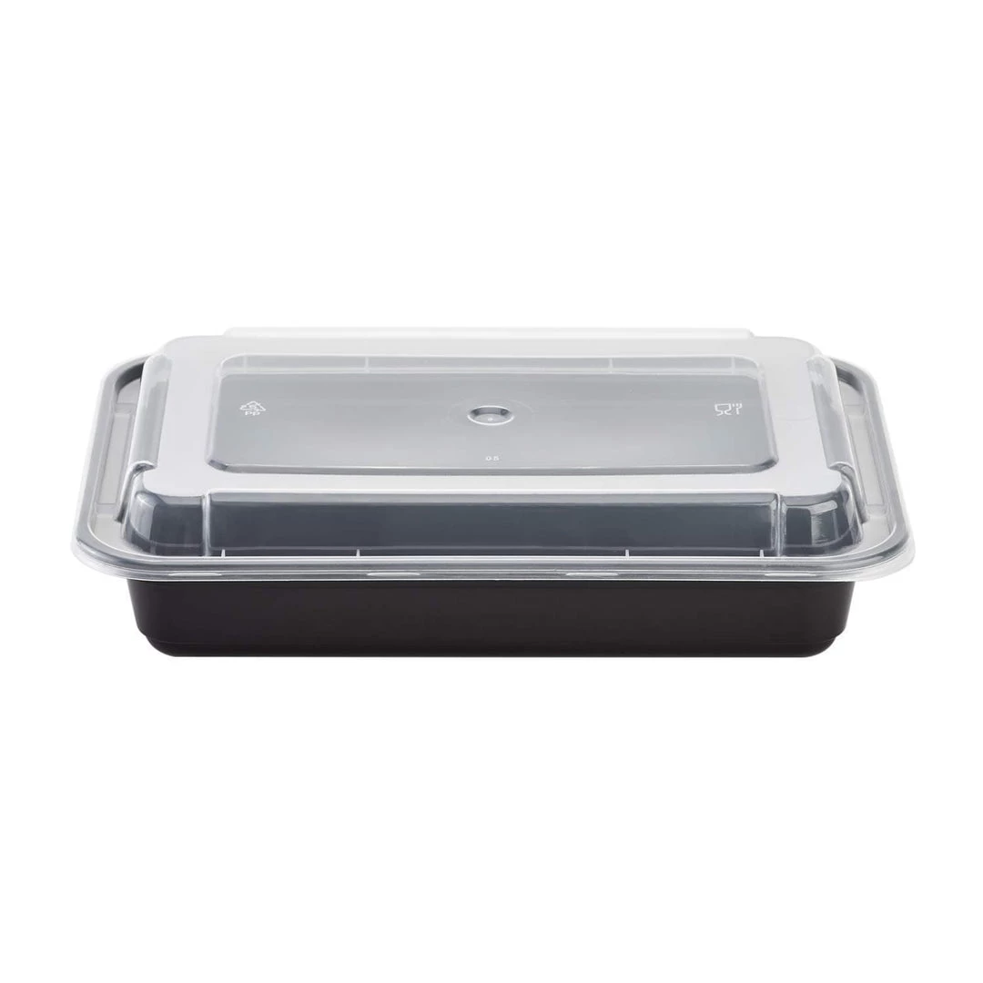 Black Rectangular Microwavable Container with Clear Lid, Lunch Box, Plastic Take-Out Food Containers are great for all of your take-out orders and prepackaged meals! Perfect for appetizers, salads and entrees, this container features a black bottom with a clear lid that fits snug and secure, ensuring that no messes or spills occur. Freezer friendly, use them for all of your food storage needs.