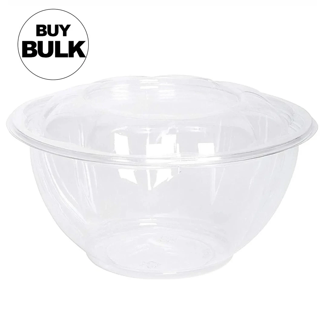 It is an easy option for packaging any of your ready-made salads for takeout! The plastic is durable and very clear so your salad or other food items inside are visible. This bowl comes with lids that fit securely and reduce the chance of leaks or spills during movement. When serving salads, you can leave the lid off and the clear plastic bowl will look great on any table!