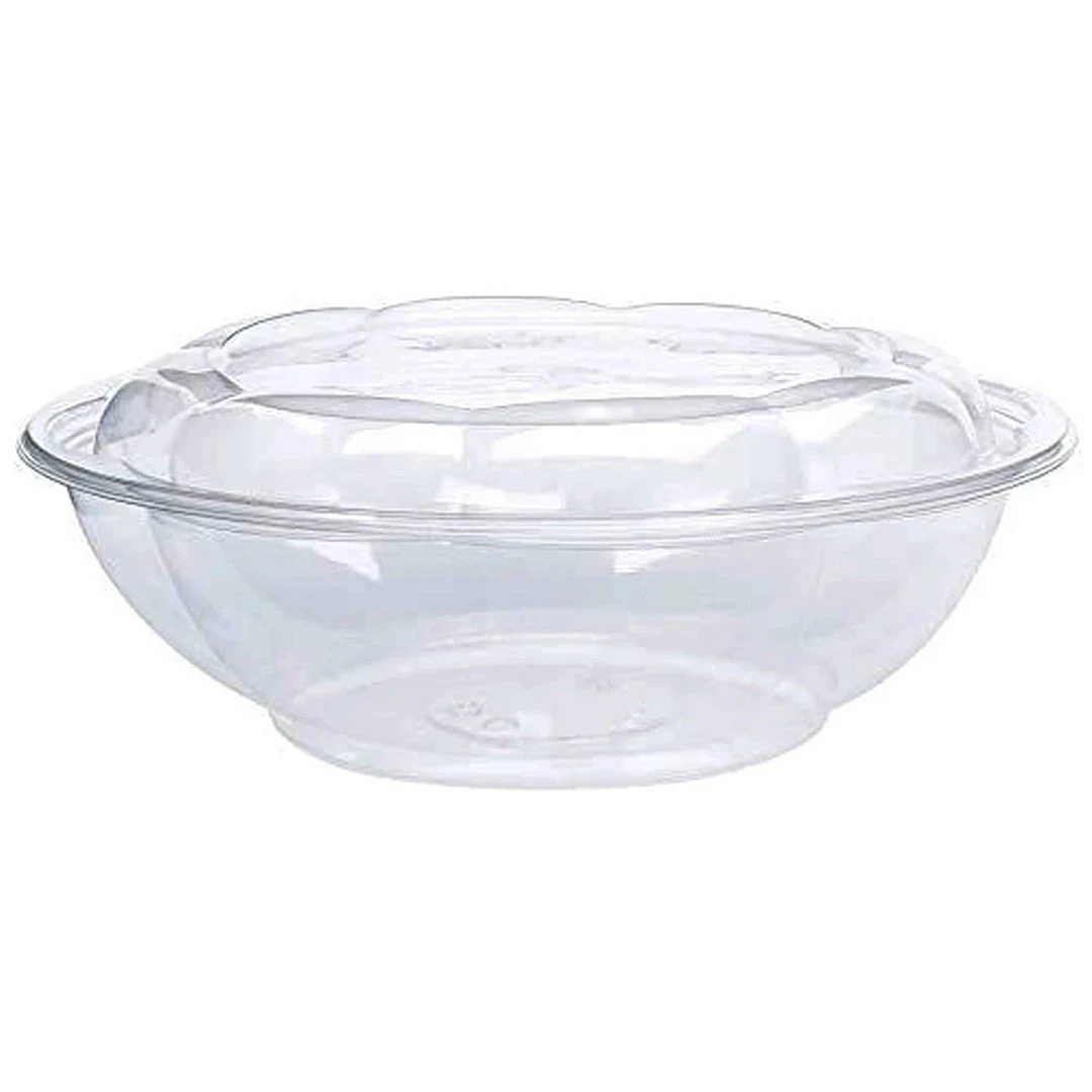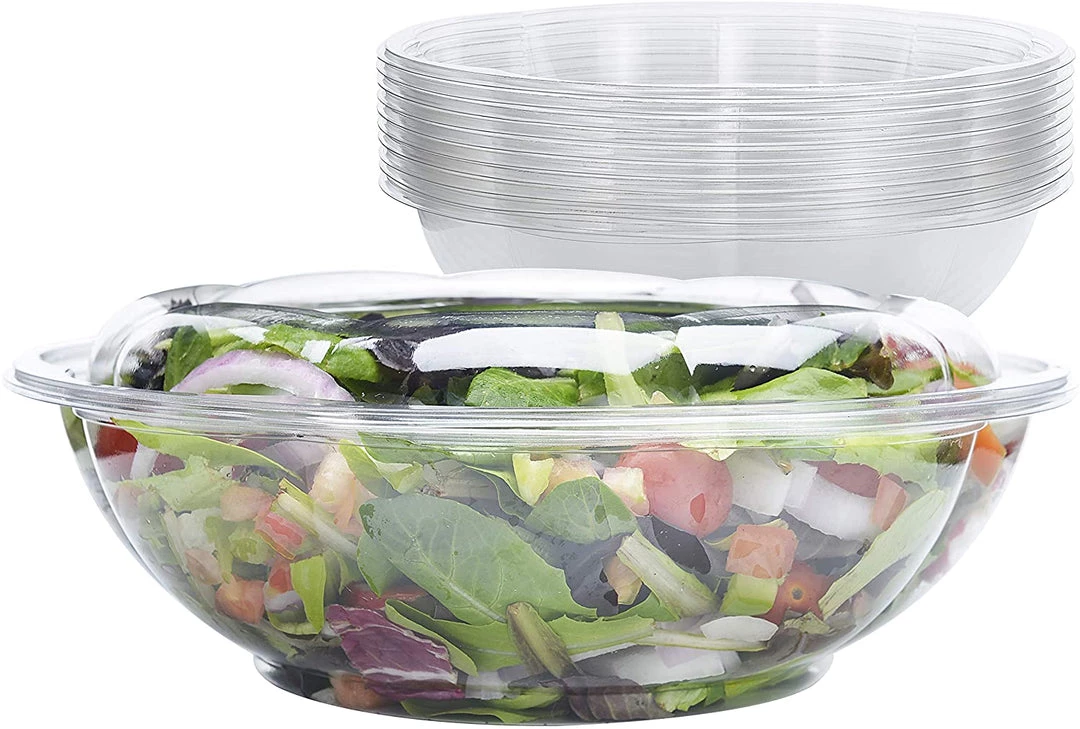 It is an easy option for packaging any of your ready-made salads for takeout! The plastic is durable and very clear so your salad or other food items inside are visible. This bowl comes with lids that fit securely and reduce the chance of leaks or spills during movement. When serving salads, you can leave the lid off and the clear plastic bowl will look great on any table!