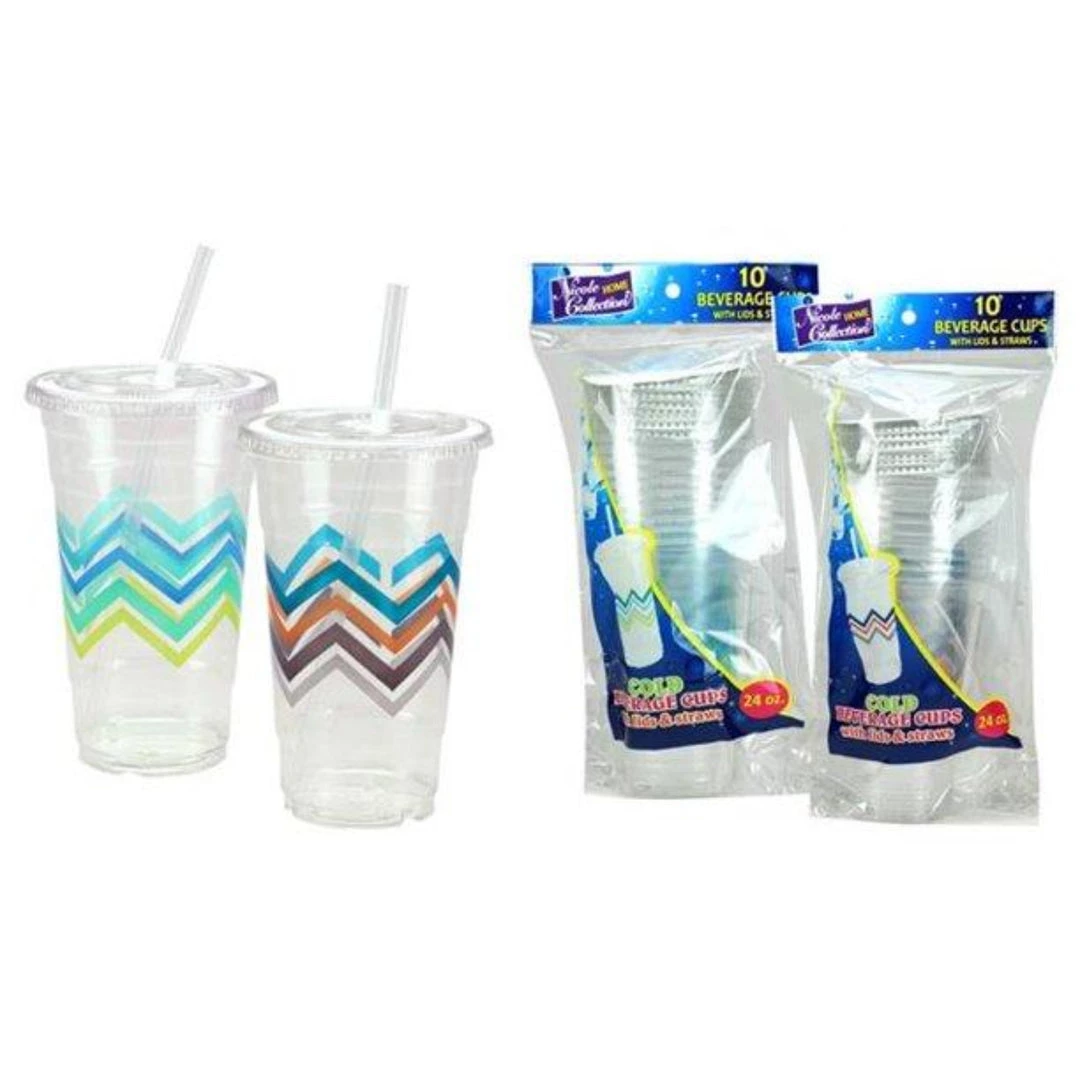 Nicole home collection 24 oz clear swirl plastic printed cups with lids and straws, 10 count. Comes in other designs: paisley and chevron. Designed for all occasions, banquets, dinners, parties, upscale catering, and home. Disposable products.