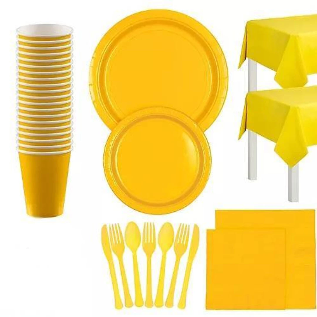 Party Dimensions 7″ Plastic Plate, Sunshine Yellow, 15 Count. This item is part of a set that includes a 9″ and 7″ Plate, 12 oz. Bowl and an 18 oz., 12 oz. and 9 oz. Cup. Matching Cutlery and Napkins also available. Comes in 16 colors: White, Ivory, Yellow, Pink, Lime Green, Hydrangea, Light Blue, Sunshine Yellow, Island Blue, Red, Orange, Silver, Blue, Hunter Green, Purple and Black. Designed for all occasions, banquets, dinners, parties, upscale catering and home.