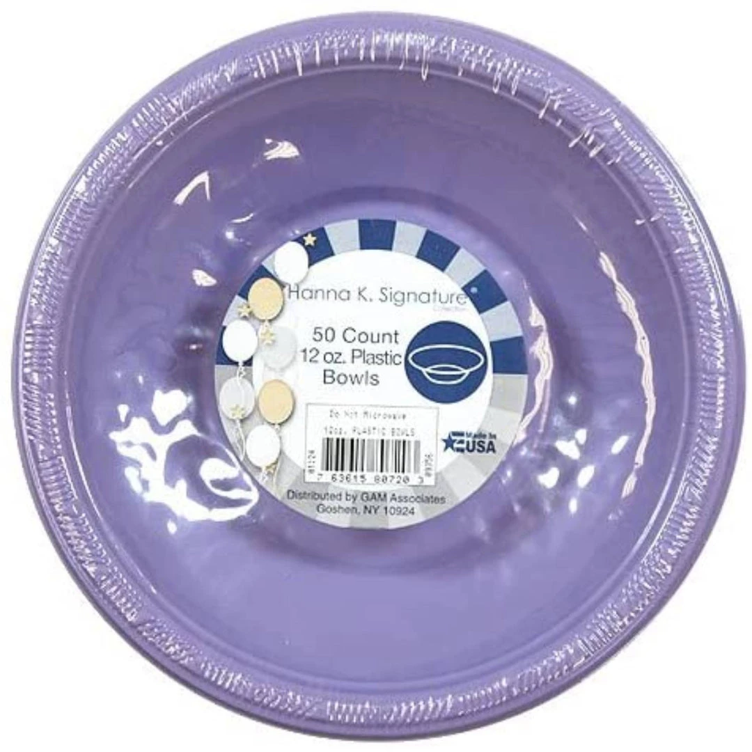 Hanna K 12 ounce Plastic Bowl, Hydrangea, 12 Count. Dinnerware in a full array of dazzling colors. Designed for all occasions, banquets, parties, upscale catering and home. Disposable.
