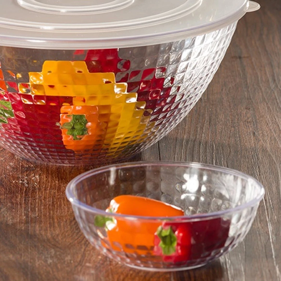 Dimensions 12 oz Clear Crystal Plastic Bowl, 6 count. Designed for all occasions, banquets, dinners, parties, upscale catering and home. Disposable Product.