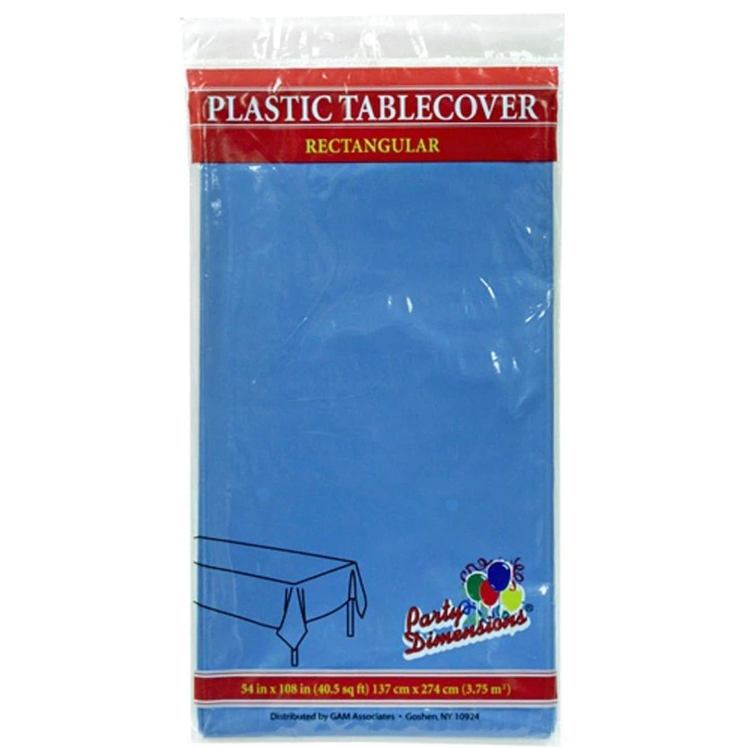 Party Dimensions Medium Blue 54″ X 108″ Rectangular Plastic Tablecover, Single count. Designed for all occasions, banquets, dinners, parties, upscale catering and home.