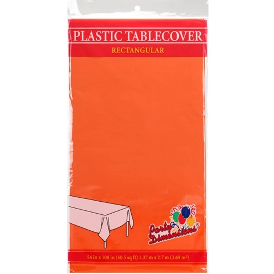 Party Dimensions Orange 54″ X 108″ Rectangular Plastic Tablecover, Single count. Designed for all occasions, banquets, dinners, parties, upscale catering and home.