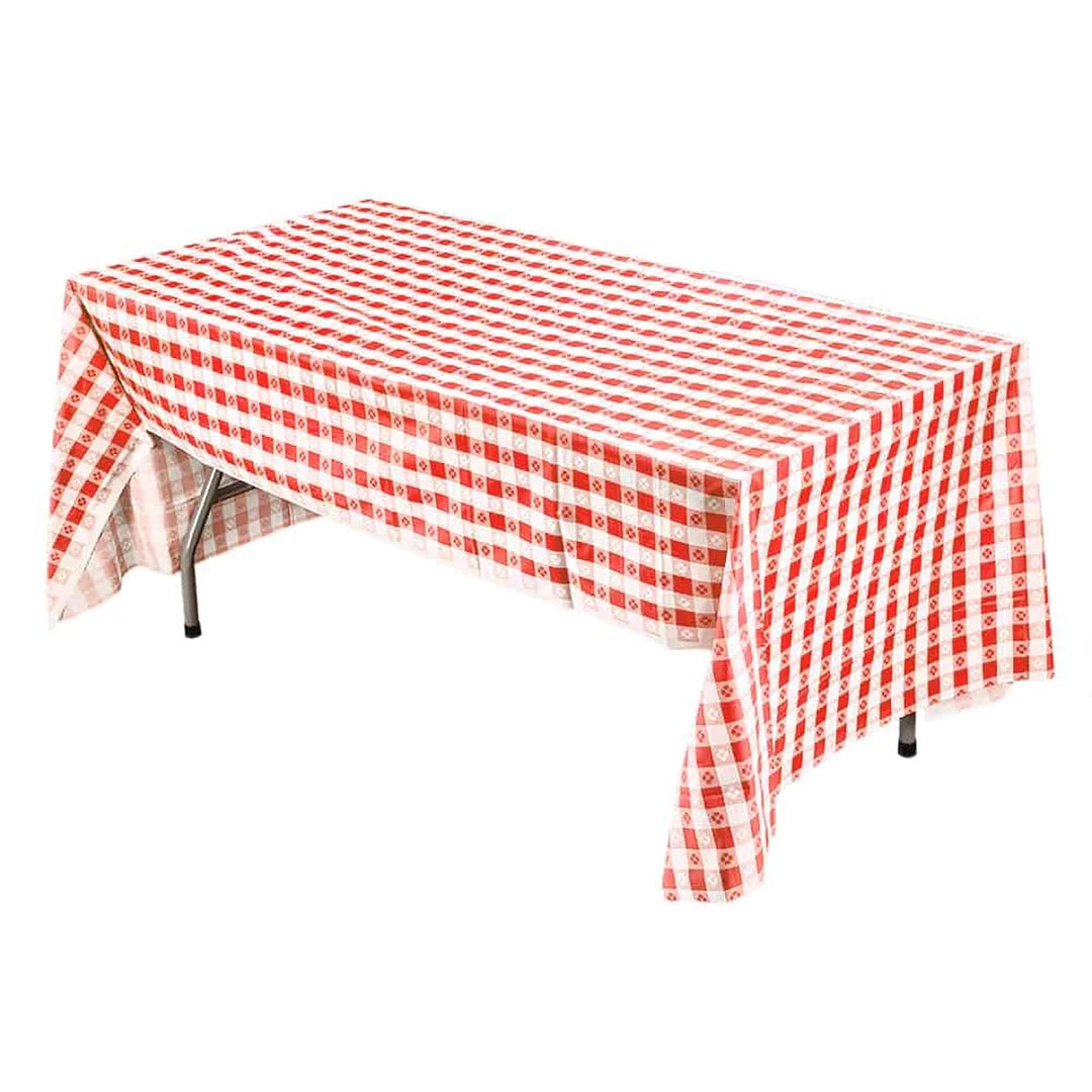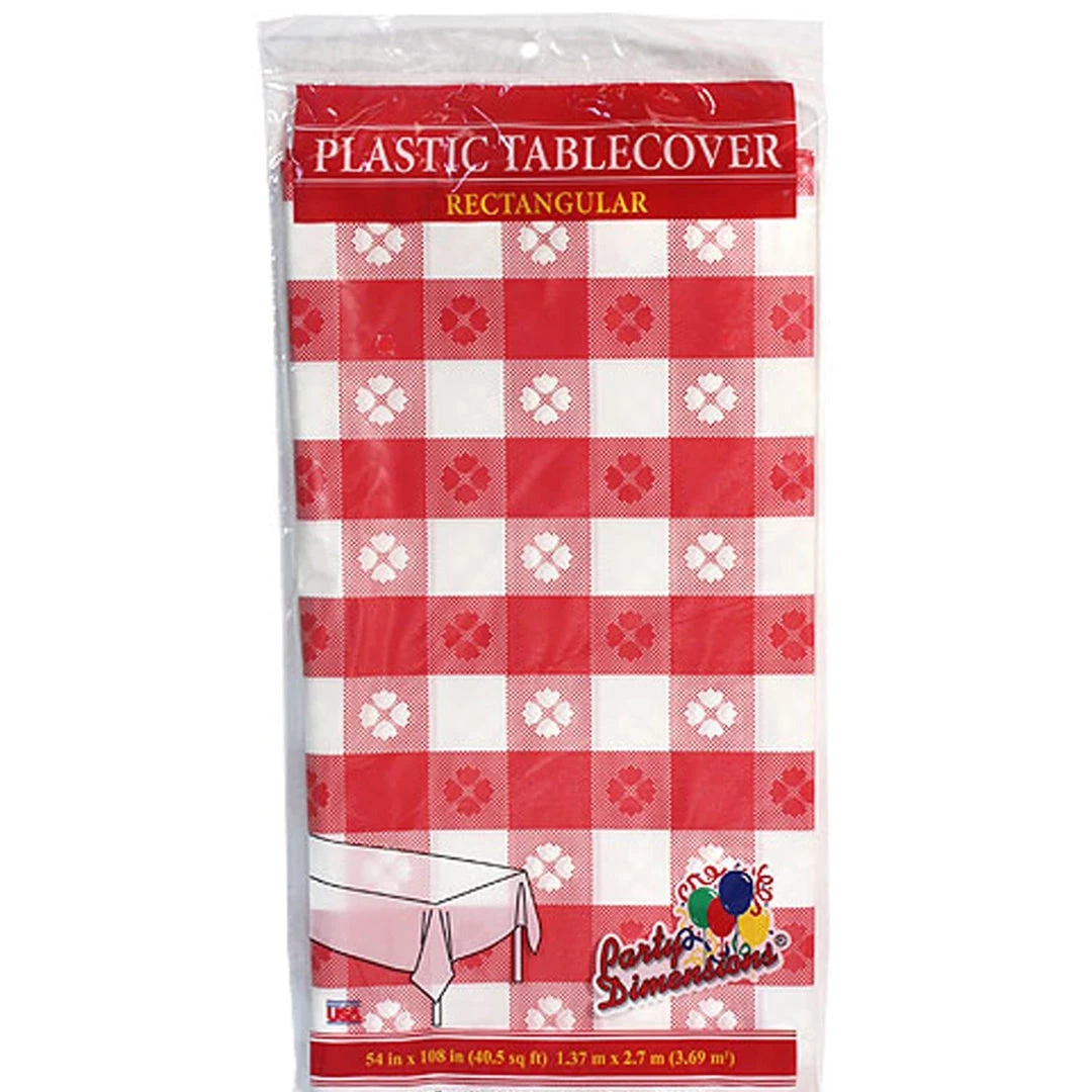 Party Dimensions Red Gingham 54″ X 108″ Rectangular Plastic Tablecover, Single count. Designed for all occasions, banquets, dinners, parties, upscale catering and home.