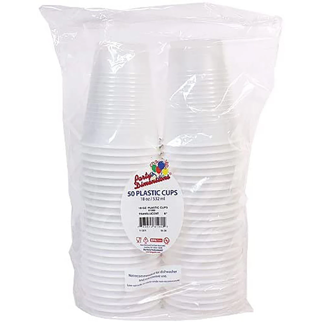 Party Dimensions 18 oz. Translucent Plastic Cup, 50 Count. Soft Plastic. Dependable, Sturdy and Economical. Designed for all occasions, banquets, parties, upscale catering and home.