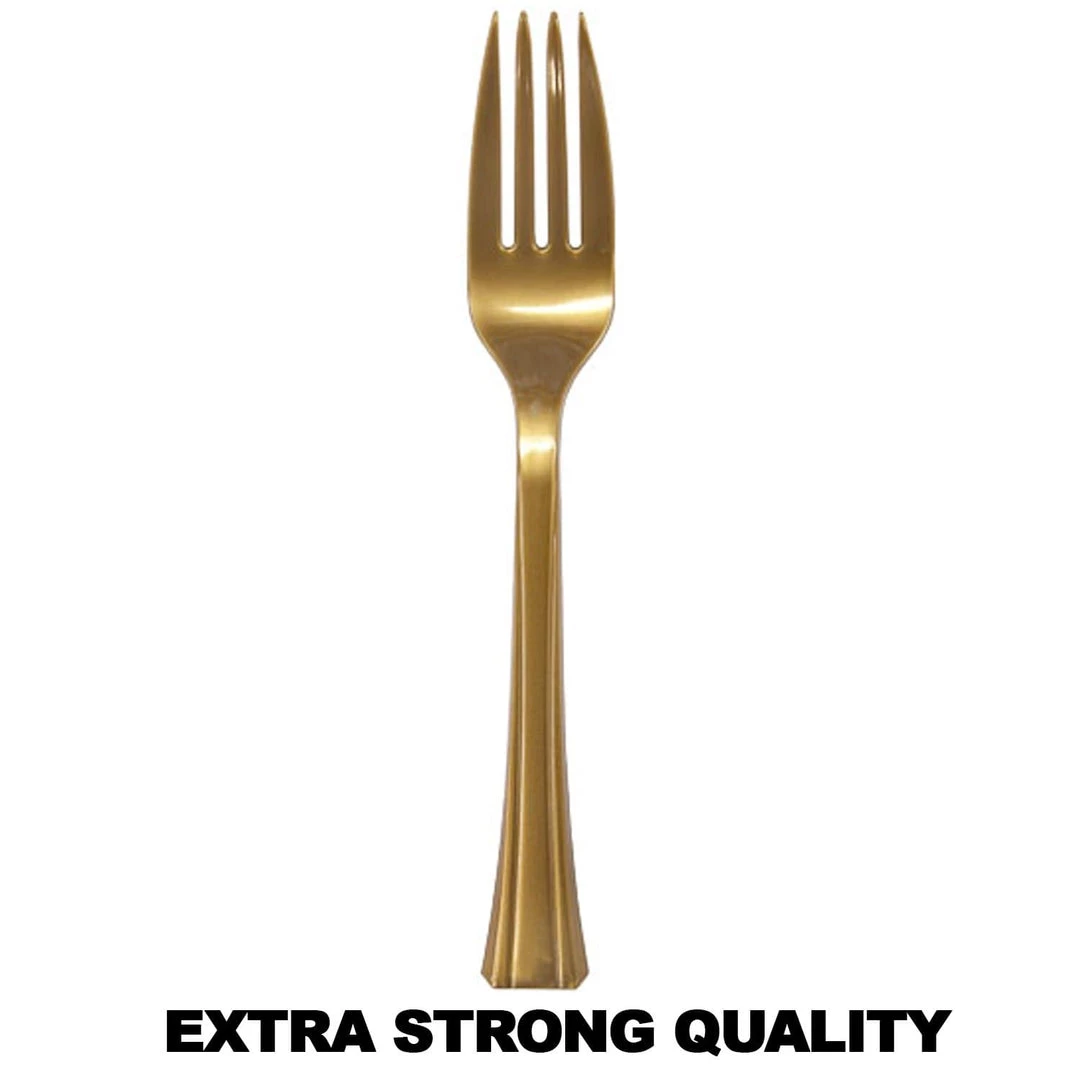 Lillian table settings gold premium plastic fork 48 count. This cutlery can be purchased in matching bagged 48 count separates of fork, teaspoon, soup spoon, knife or 24 count combo. This style cutlery comes in 5 colors: clear, pearl (white), Sahara (off-white), gold and silver. Please view our whole Lillian table settings line for coordinating plates, bowls, napkins, serve ware and drink ware.