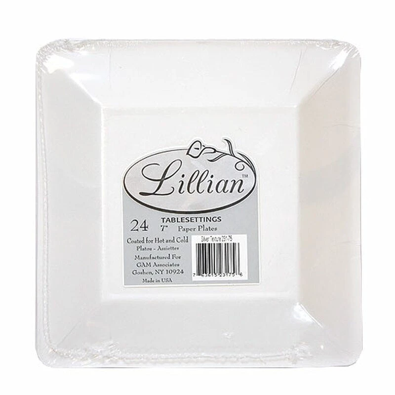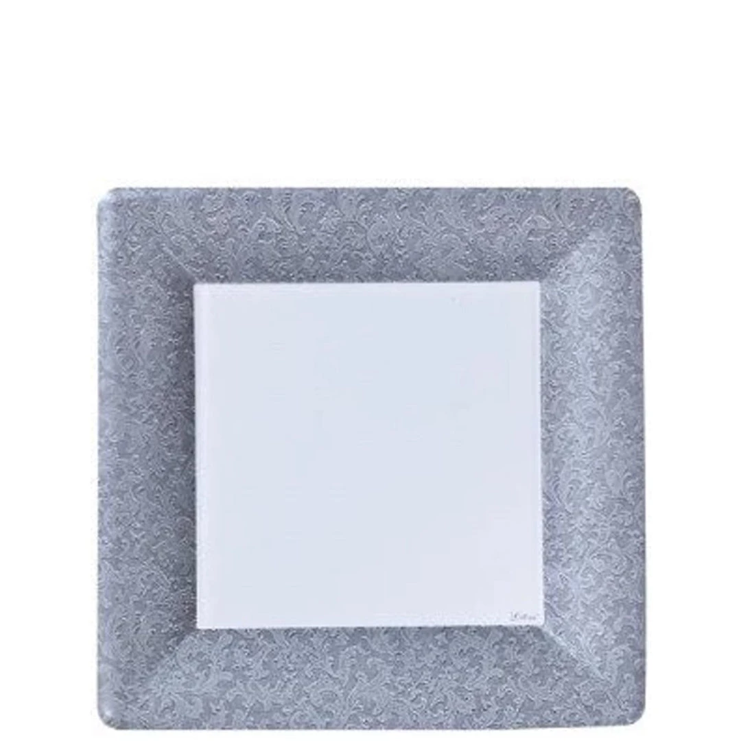 Lillian Silver Texture 7″ Square Paper Plate, 24 pieces. Designed for all occasions, banquets, parties, upscale catering and home. Disposable.